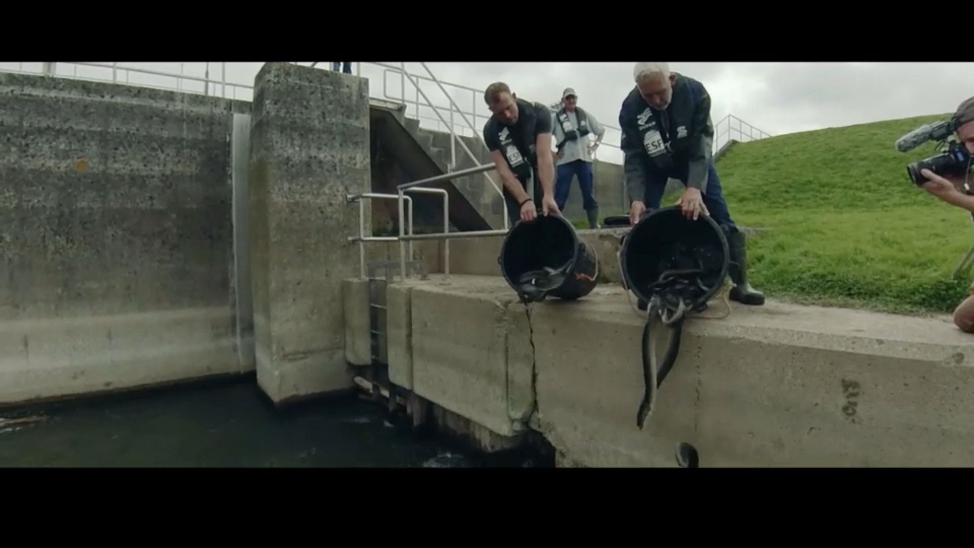 The ‘Eels over the dyke’ project around the Netherlands aims to mitigate that threat. Fishermen like Frans Komen and his son, catch eels off-season to release their catch on the other side of the dyke, creating a safe passage to the sea.